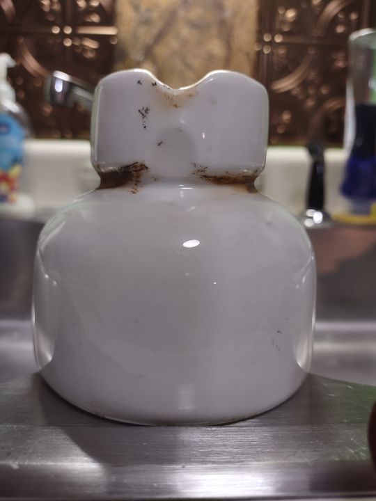 White porcelain with wood pin, one flake inner skirt, $100 shipped. $85 delivered to Springfield, OH show.