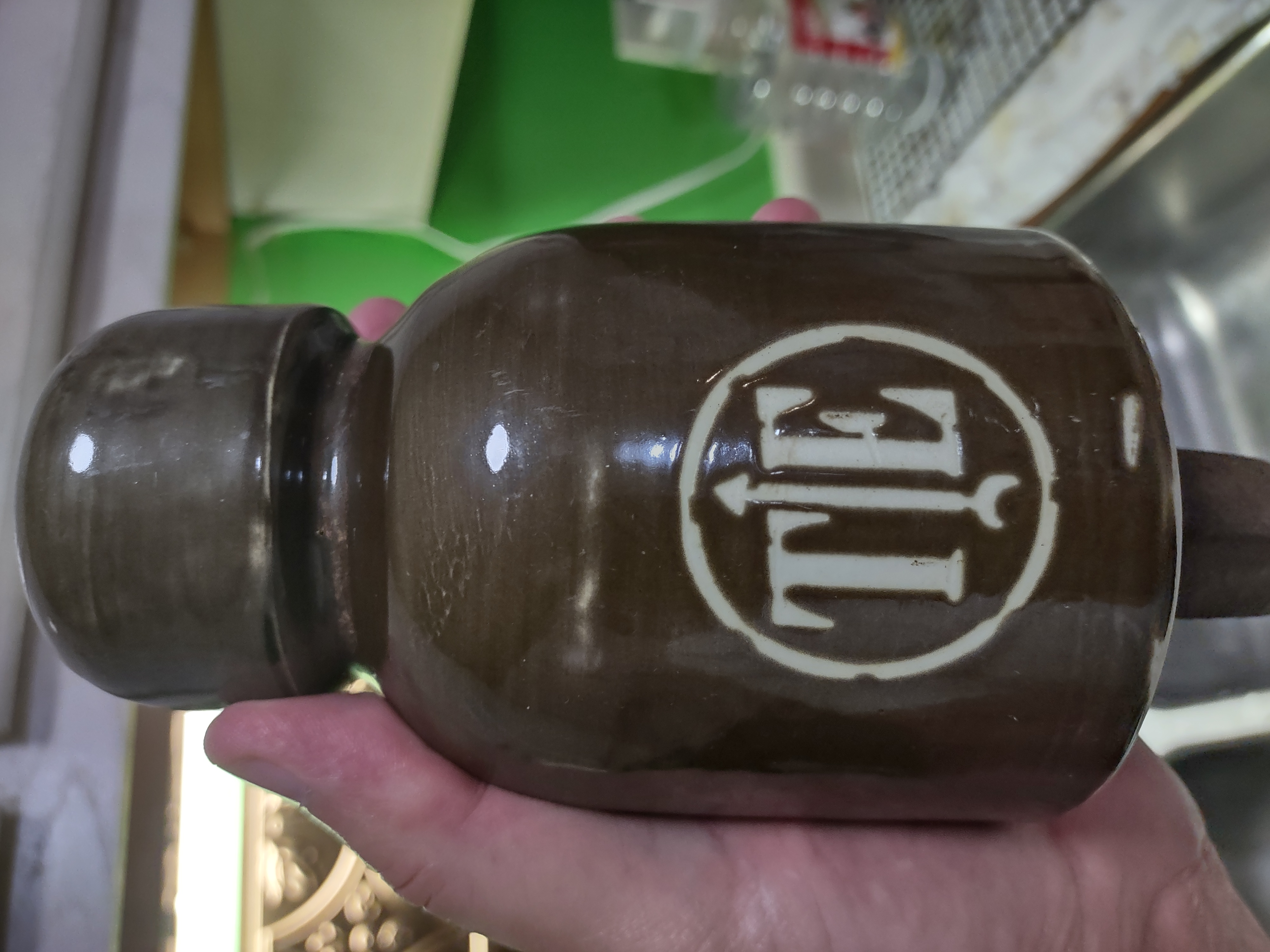 Brown porcelain with "cemented" pin, $100 shipped, $85 delivered to Springfield, OH show.