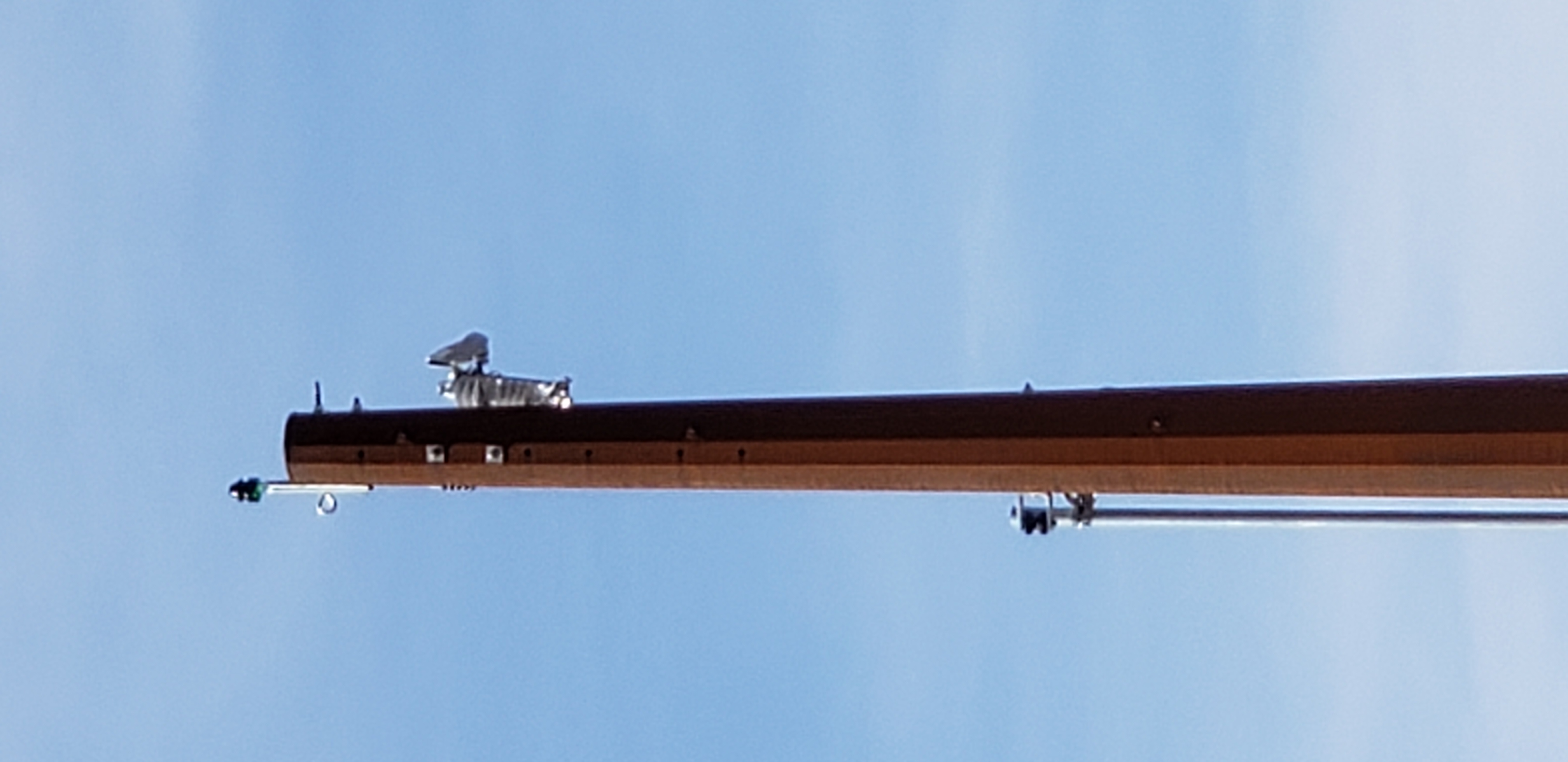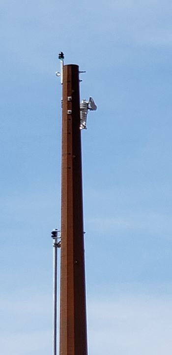 On my way into town I realized I forgot my phone. While returning home I noticed a utility company erecting a pole that appeared to have an unused pin at the top. Upon arriving back home I took a gamble and along with my phone, grabbed a couple glass insulators and placed them into my trunk. On my way back into town I swung my car alongside the utility workers and a supervisor immediately walked up and asked "Can I help you?". I told him I was an insulator collector and asked him if he could possibly place an old glass insulator on the unused pin atop the pole for "old time's sake!". Much to my surprise he reacted positively and said "SURE!". He seemed to appreciate the fact I collected insulators and we briefly chatted about the hobby. I popped open my trunk, removed a purple Cal 161 and a dark emerald green McLaughlin 164 for him to choose from. He chose the McLaughlin possibly because the darker color would be less conspicuous on the pole. Nobody was on the pole at that moment so I decided to leave, never really expecting my insulator would actually be placed atop that pole. Two hours later on my return home I took a glance at that pole. All the workers were gone, but much to my surprise the McLaughlin 164 insulator was sitting high atop it in all its glory! I took a photo with my phone and realized at that very moment that this special insulator will be there long after I'm gone. To the best of my knowledge, this is the ONLY glass insulator atop a pole in my entire city! I hope to get a better close-up photo of it soon and will post it here. |