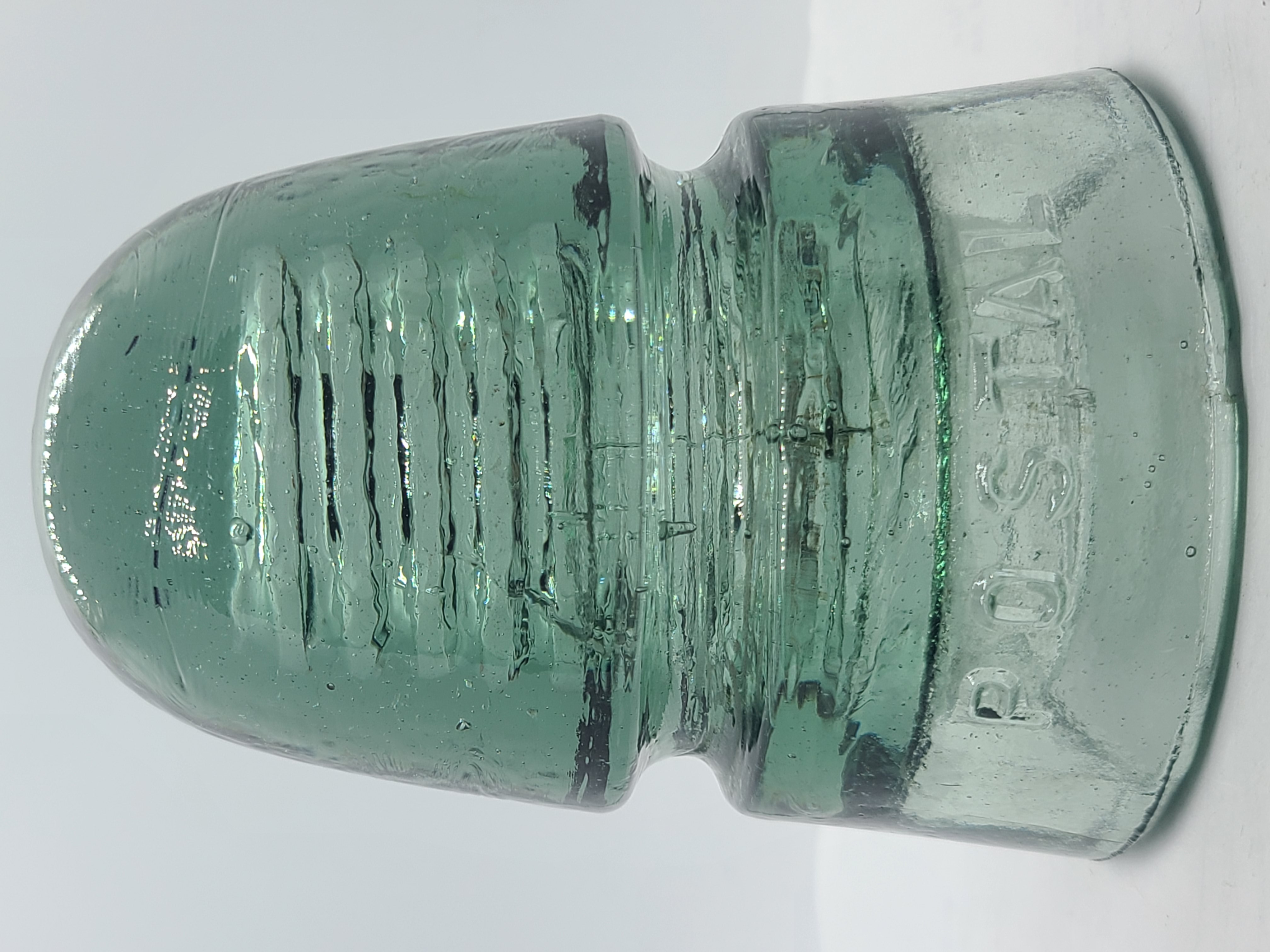 Pretty sage green Postal with a little fizz. In nice shape, just two small open bubbles on the base and annealing lines in the threads, typical for California. Asking $30 plus $9 for shipping, or free delivery to the Richfield or Springfield show.