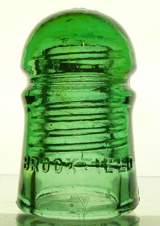 CD 102 BROOKFIELD pony insulator. Front skirt: BROOKFIELD. Top of dome: a dot 8. Smooth base. YELLOW GREEN. Minty. As close to mint as you will find. No distractions to note.