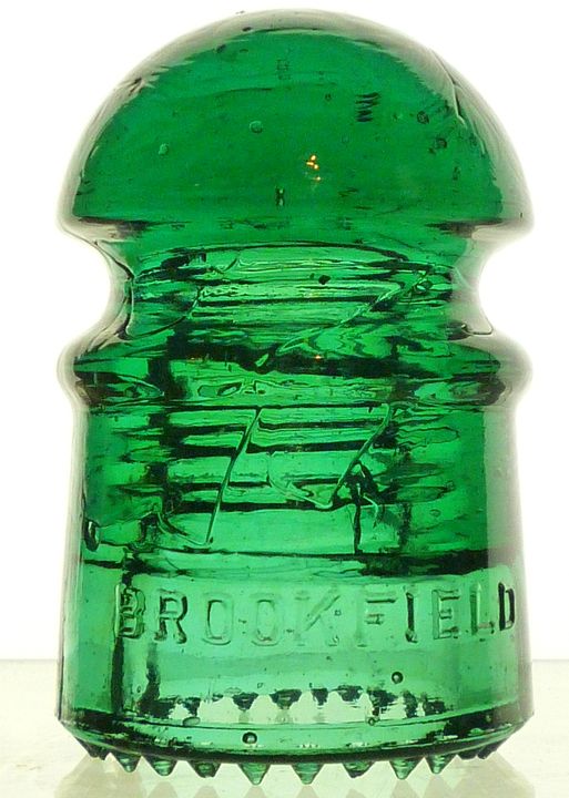 USED CONDITION CD101 BROOKFIELD pony insulator. Front skirt: BROOKFIELD. Dark tealy aqua. SHARP DRIP POINTS. 1 drip chipped and 1 chipped drip associated with a small " pinky nail " flake on lower skirt. Top of dome is a backward "6". A small " pin prick " on dome. Full DOME GLASS.. No other distractions to note. Stock #a4115 $10.00 + shipping |