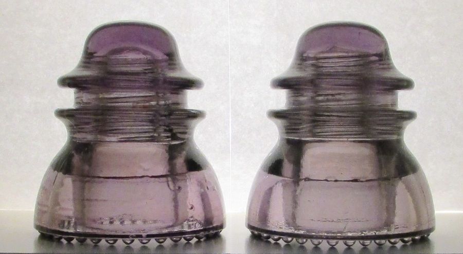 Here are two Agree CD 154 insulators in the two known shades of purple. The lighter one is mint the darker one is not, but I am glad to own them.