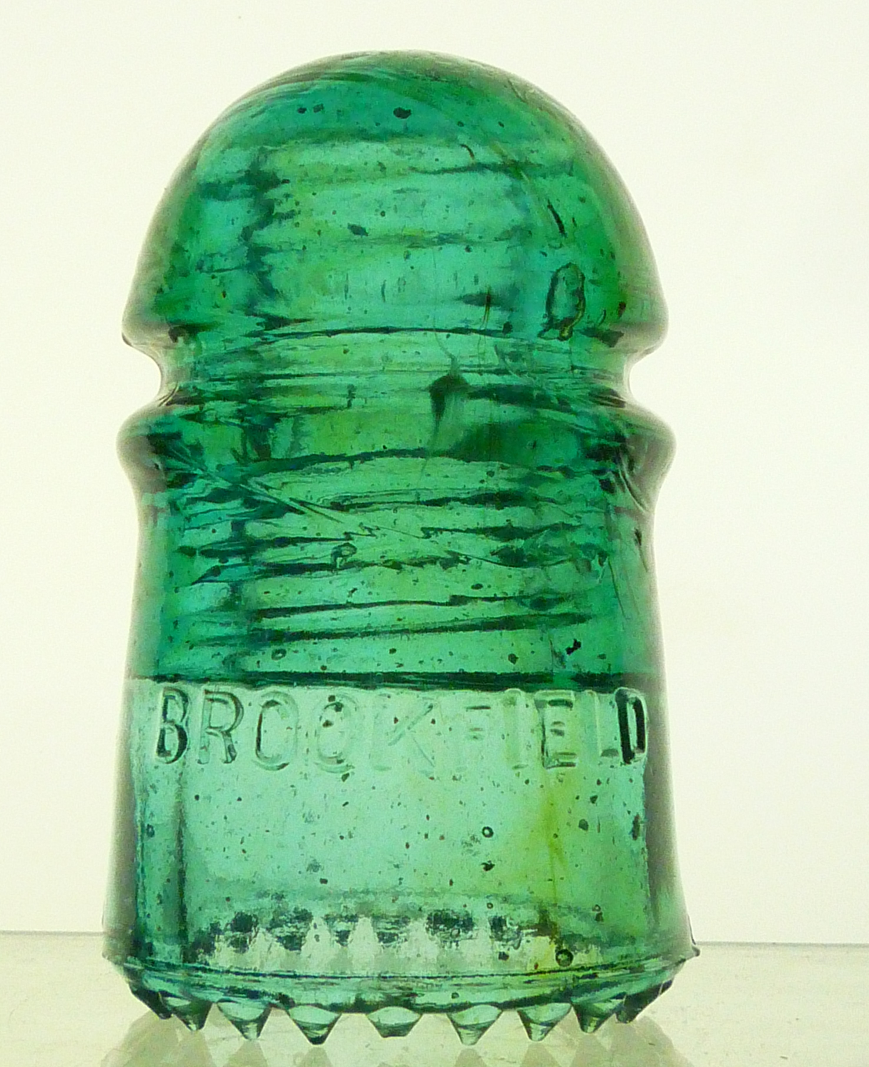 USED CONDITION CD 102 BROOKFIELD pony insulator. Front skirt: BROOKFIELD. AQUA. Sharp drip points. 4 random partially flaked. Light streak of amber in dome. Overall nice condition. No distractions to take away from the piece. Stock #a4116 $10.00 + shipping |