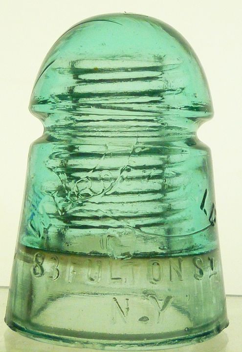 CD 104 W/ BROOKFIELD / 83 FULTON ST / N.Y. pony insulator. [030] Bold embossing. Smooth base. AQUA. Small flat base flake from the factory in the rear. Small " lehr kiss " above the " LT " in the address. Overall nice condition no other distractions to note. Stock #a4117 $20.00 + shipping |