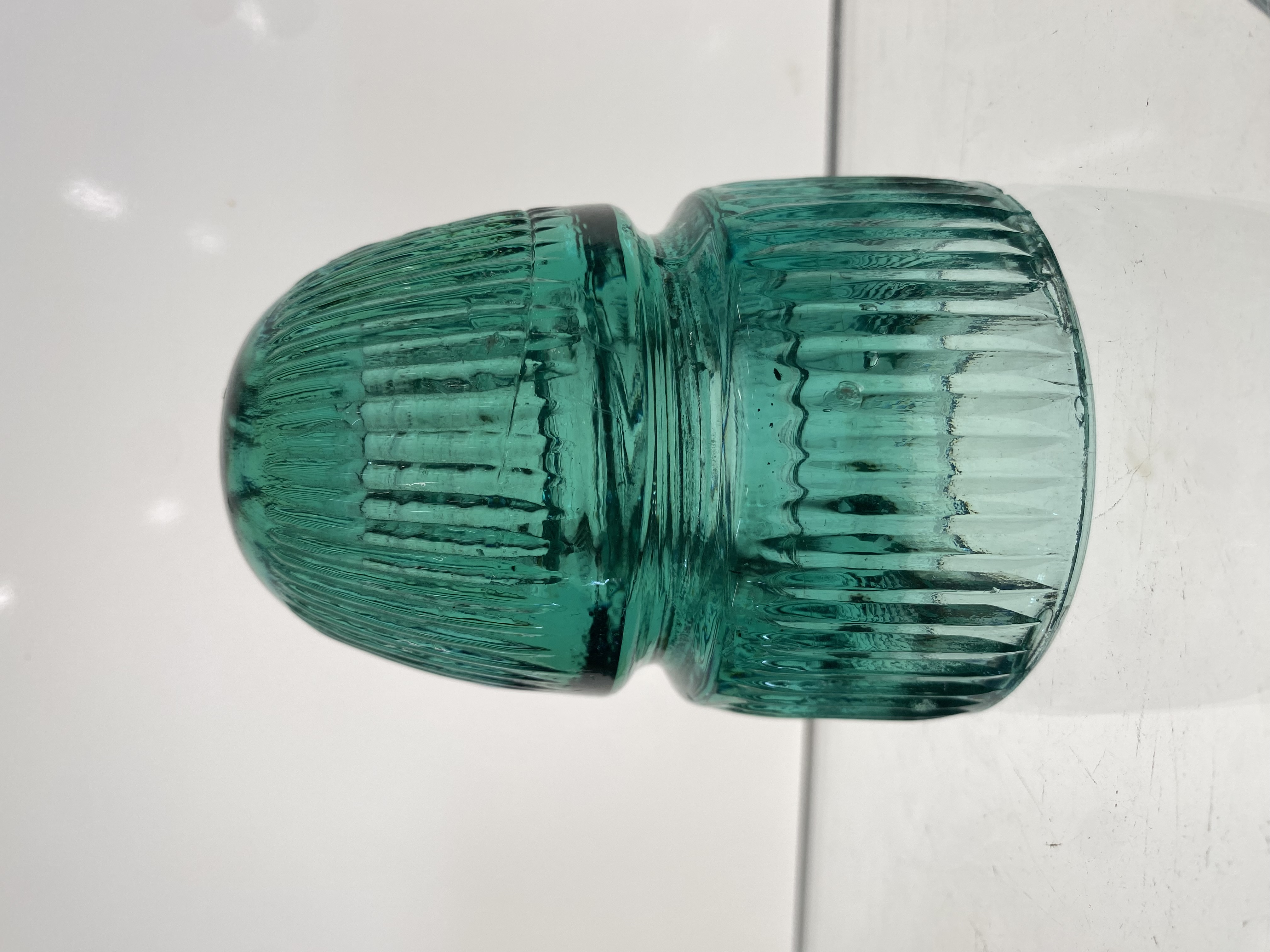CD 143 pleated skirt in Green. A few minor pecks and pings on ridges and some thin tiny open bubbles on inside edge of base. $150 postpaid in U. S.