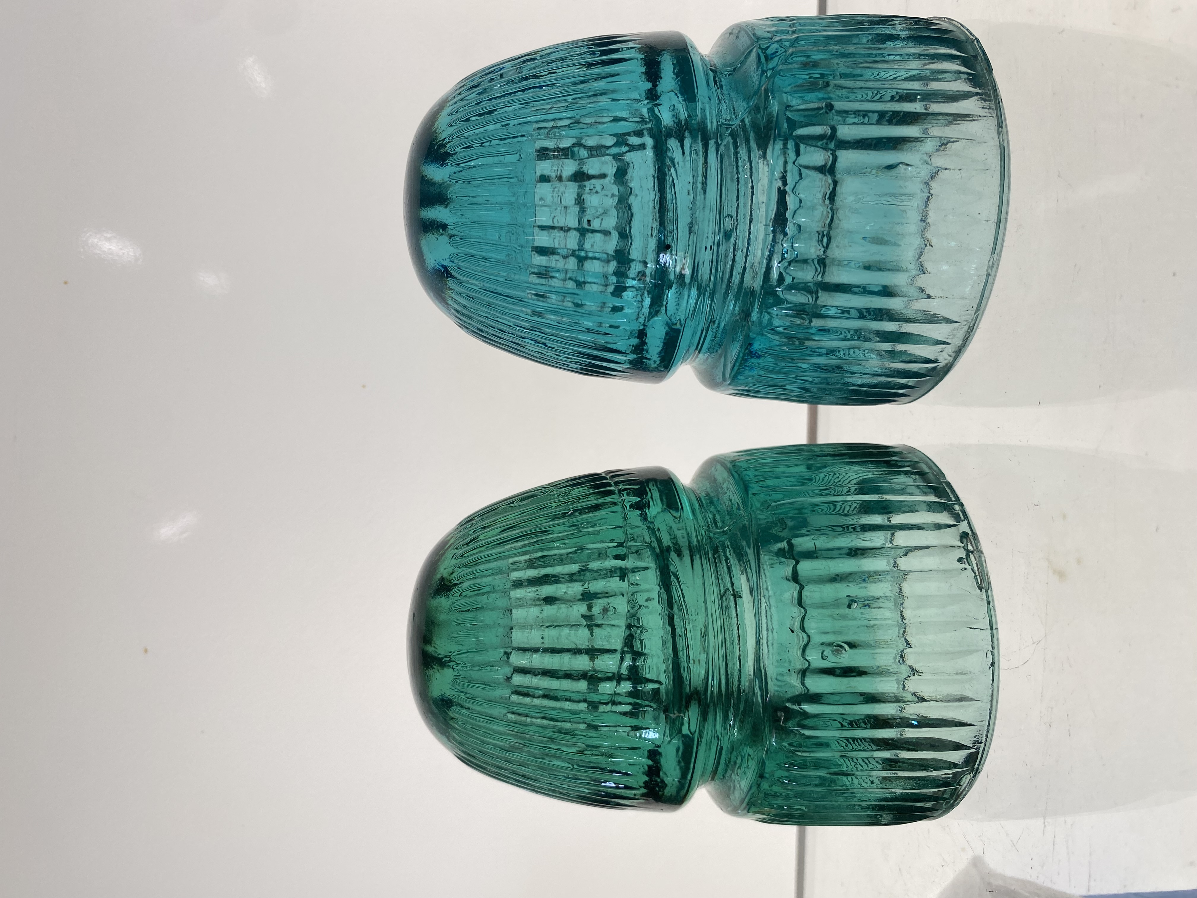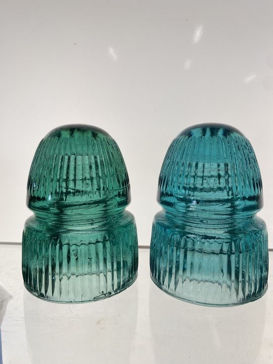 The one for sale in green aqua is on the left compared to the aqua on the right.