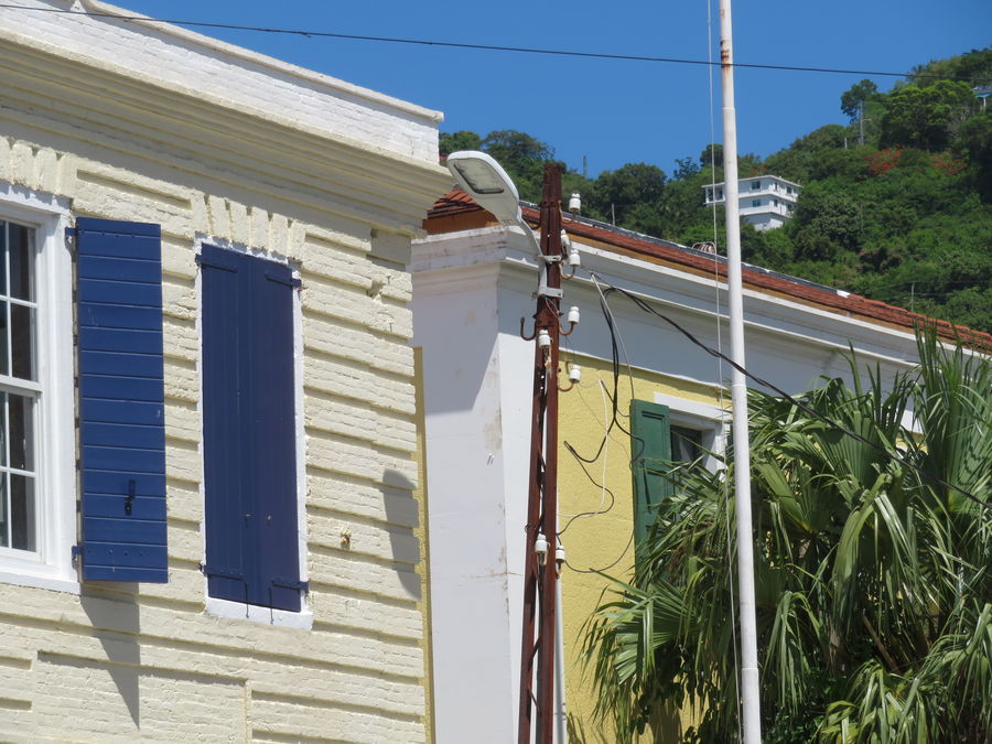 Several European insulators on Commadant Gade Street in Charlotte Amalie.