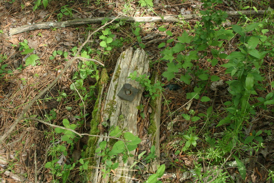 About 300' from my back door. It is still sleeping peacefully there as I found two more poles to the north and rescued those 42s. Note that here was only one fizzy, sharp-dripped Hemi-blue 42 on each pole on the pole-position pin. Very odd as all poles had just one ten-pin crossarm with no evidence of the other pins being used at some point in time. |