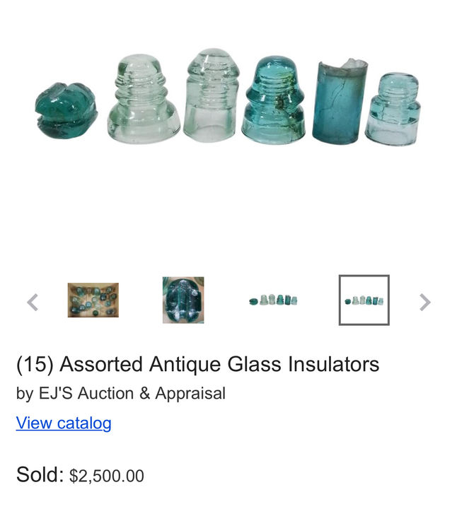 Another round of Tommy Bolack's collection sold at auction today. This lot included a broken threadless Wade and a signal that appears to have a large piece of wire in the glass. The lot sold for $2,500.00