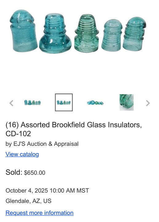 This lot from Tommy Bolack's collection sold today. It included what looks like a milky aqua CD 126.4, a CD 134 KCGW and a Wonky CD 112 Brookfield 31