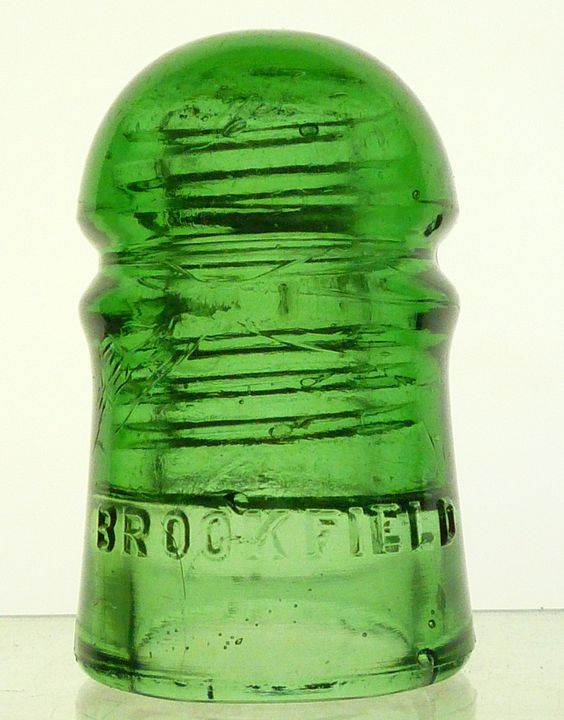 USED CONDITION CD 102 BROOKFIELD pony insulator. Dome embossed: dot 8 Front skirt embossed: BROOKFIELD. Smooth base. YELLOW GREEN. Has a small rough spot on the upper wire rim in the rear. Overall nice condition with no other distractions to note. Colorful addition for any collection. $25.00 + shipping Stock #a4125 |