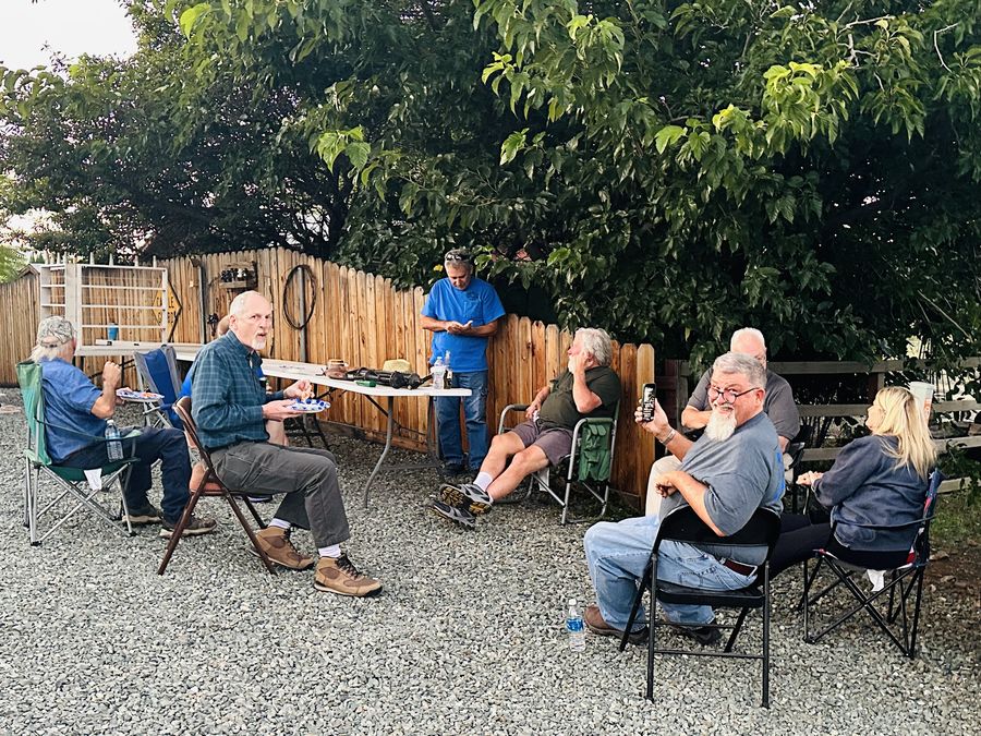 This was Friday night's get together, Beer, Italian food, and Camp Fire. Most of the evening was spent discussing the Military Telegraph Line. Matt Grayson gets the longest travel award flying in from Florida and renting a car. Matt brought along with him a selection of killer porcelain including a fantastic GP Co Gray Pony that I snatched up. Thank you Matt for your extraordinary effort. |
