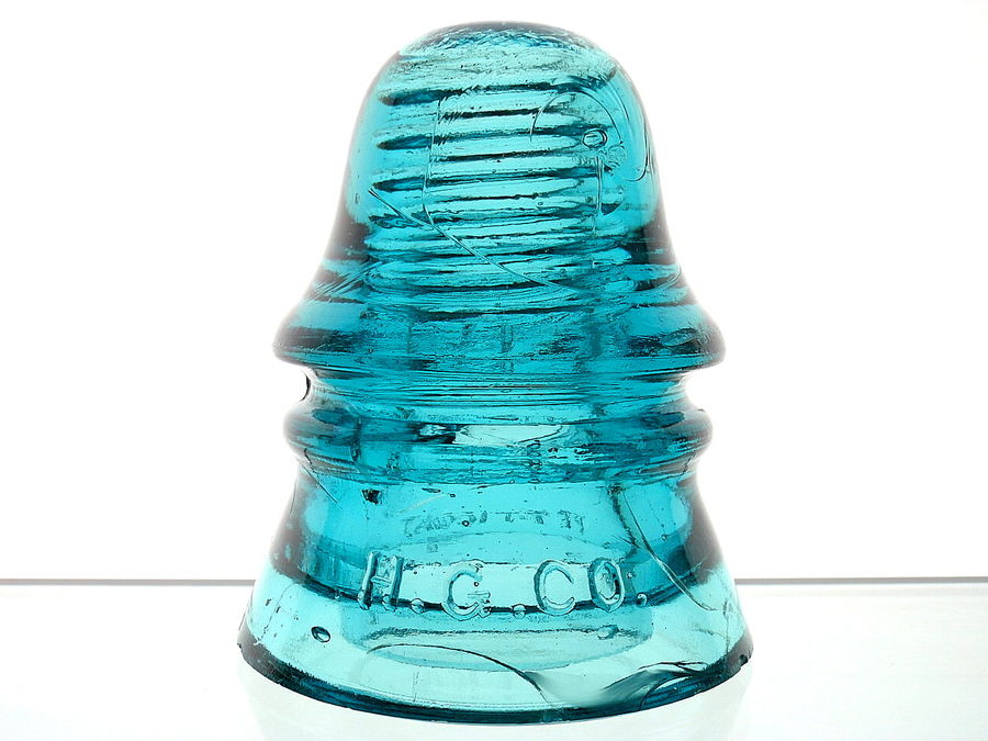 Fantastic blue for one of these!! Two needle point ticks, side base 5/16" flake and three annealing lines with a slight flash between them on the front skirt are the only flaws. $ 55.00 includes shipping.