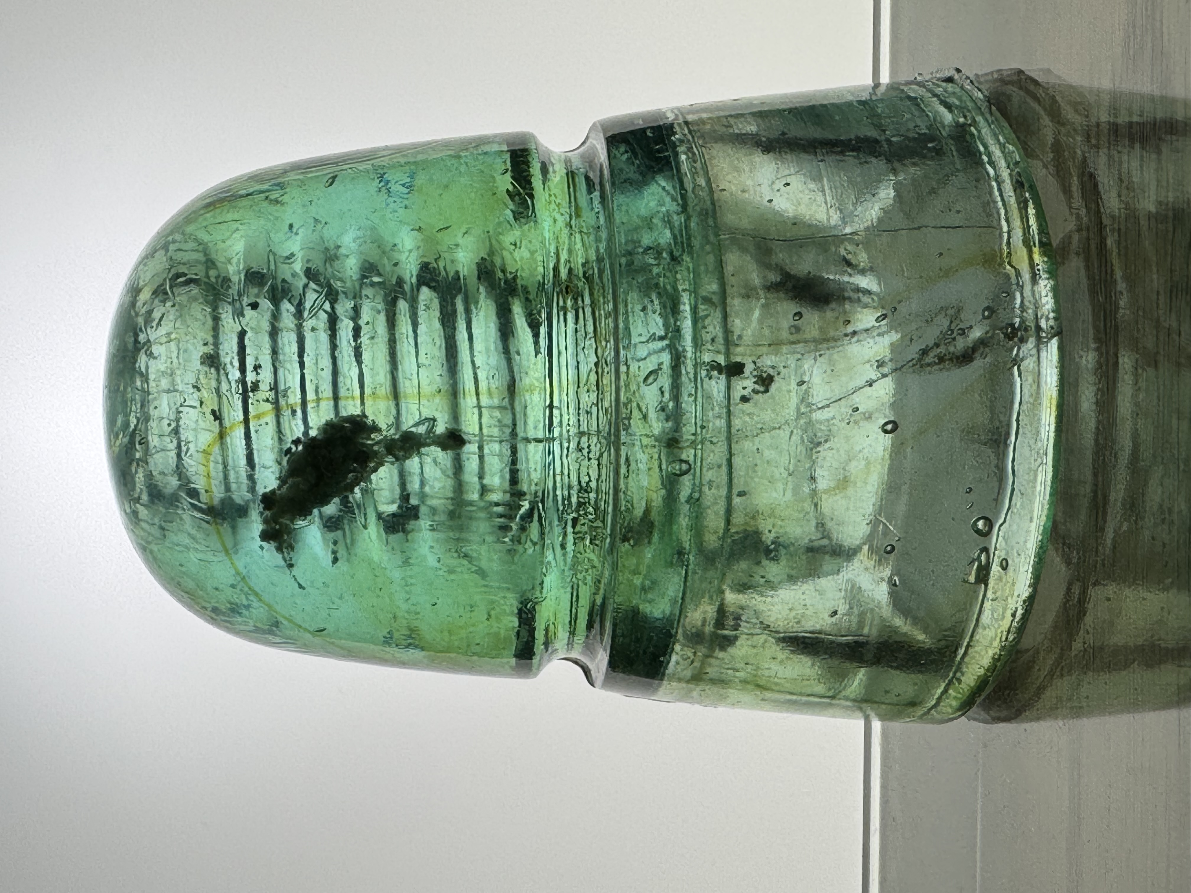 Someone had a deal on this one IMO but wasn't happy with an undisclosed stress line in the threads. Can't "fault" them for that (pun intended). Killer character CREB with what looks like a mess of gunk in the dome and color swirled throughout. Has long mold vent fangs on the inner skirt. BB ding with small legs in dome and aforementioned stress line in threads about 1/2" or less. Anyone putting together a run of CREBs especially ones with character should add this to their collection. SOLD |