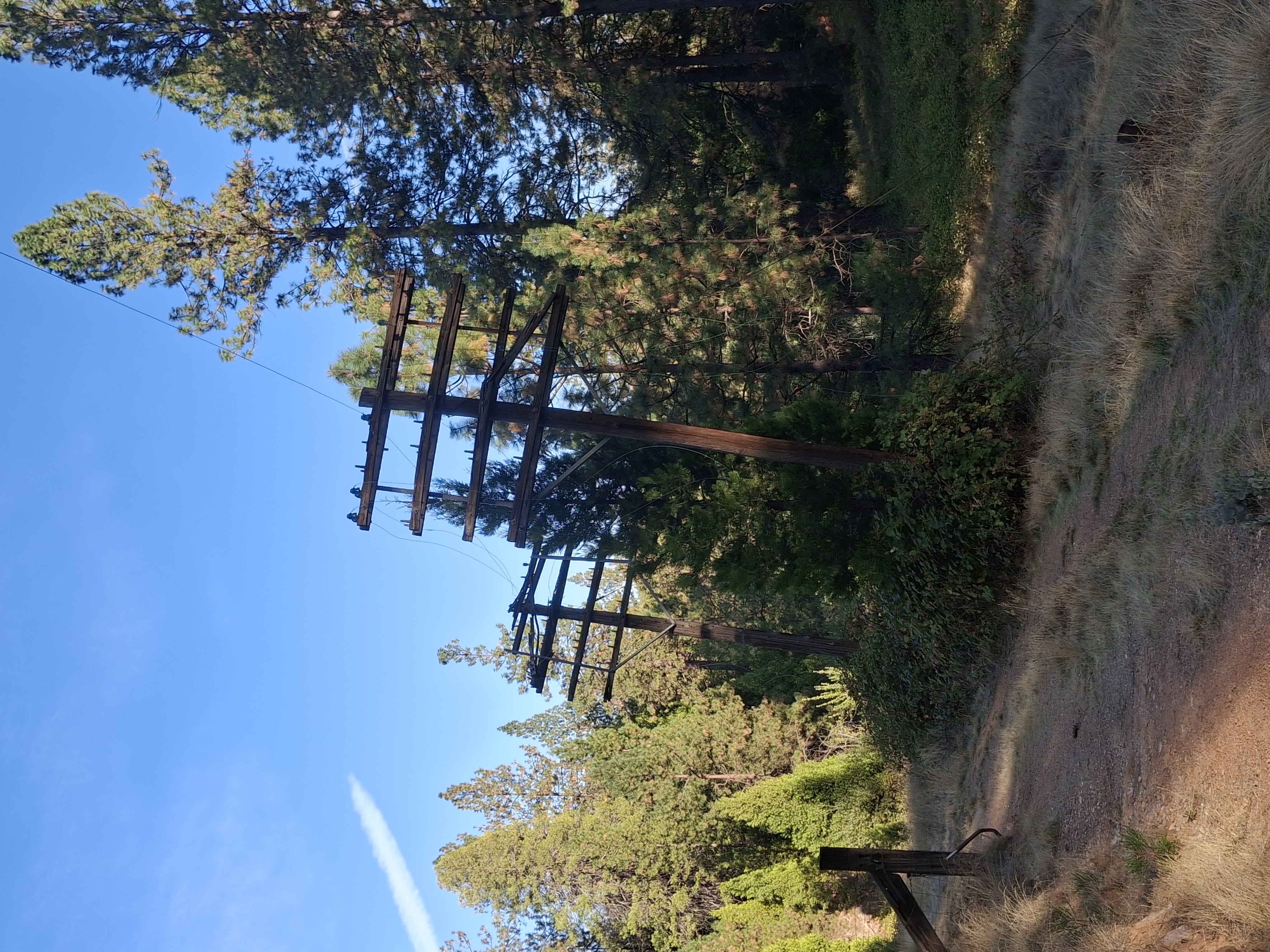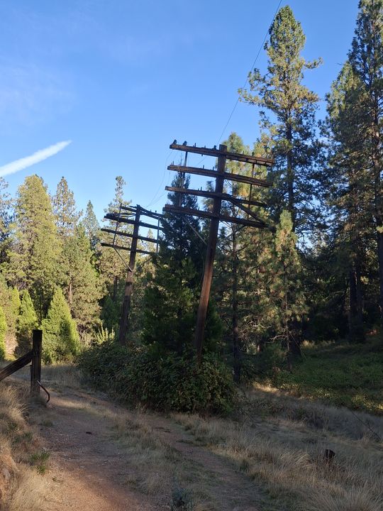These poles still sport 4 crossarms. They were constructed with a snow brace under the bottom arm.