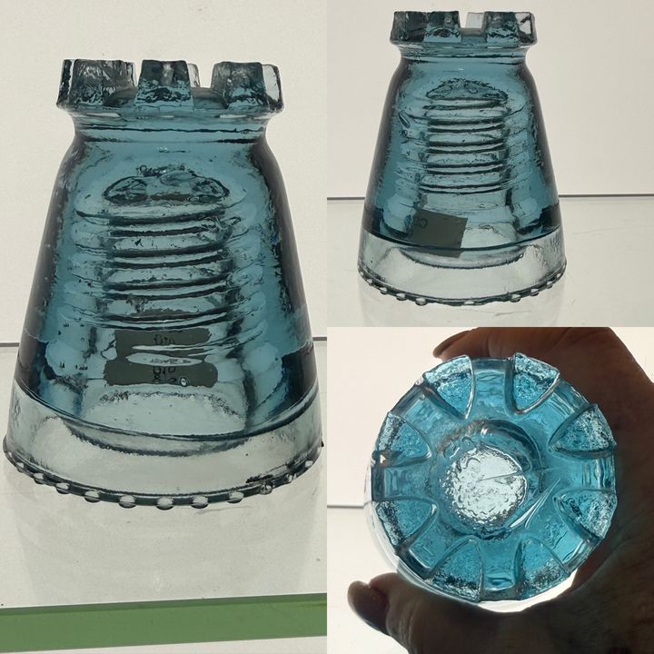 I have a light blue castle for sale. Has a base chip that affects three of the drips and only one small nick out of the turret at the nine o clock position in the top view. Dons price guide has it at 1250-1500 for mint. $1100 plus shipping and I can provide more photos if needed. |