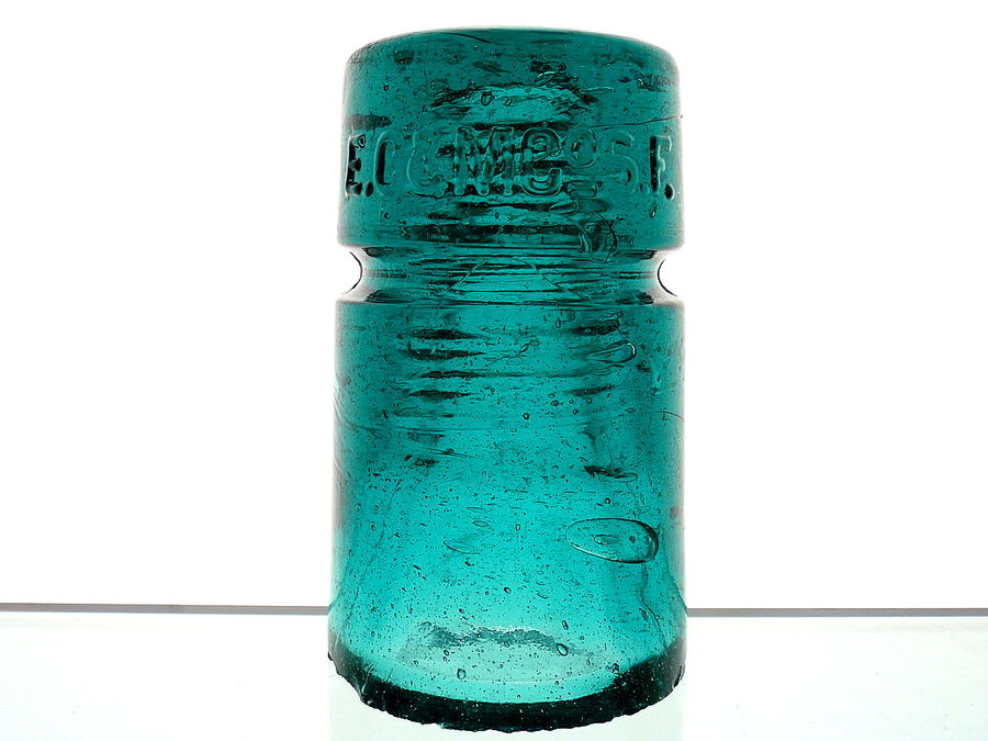 Dark aqua loaded with bubbles "B" mold in exceptionally nice condition. Side base flat 3/8" flake is the only flaw!! Tough to find one in better condition than this! $ 370.00 includes shipping.