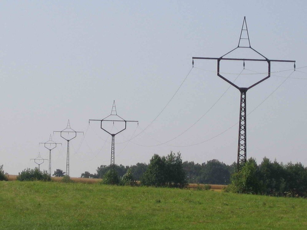 Unique power line from Großenhain-Mülbitz towards Meißen. Probably constructed in the 1910s and removed around 2005. There was a second generation of witchhats in Saxony once, constructed in the 1930s but none of them survived until now. Foto taken around 2004, unknown fotographer. |