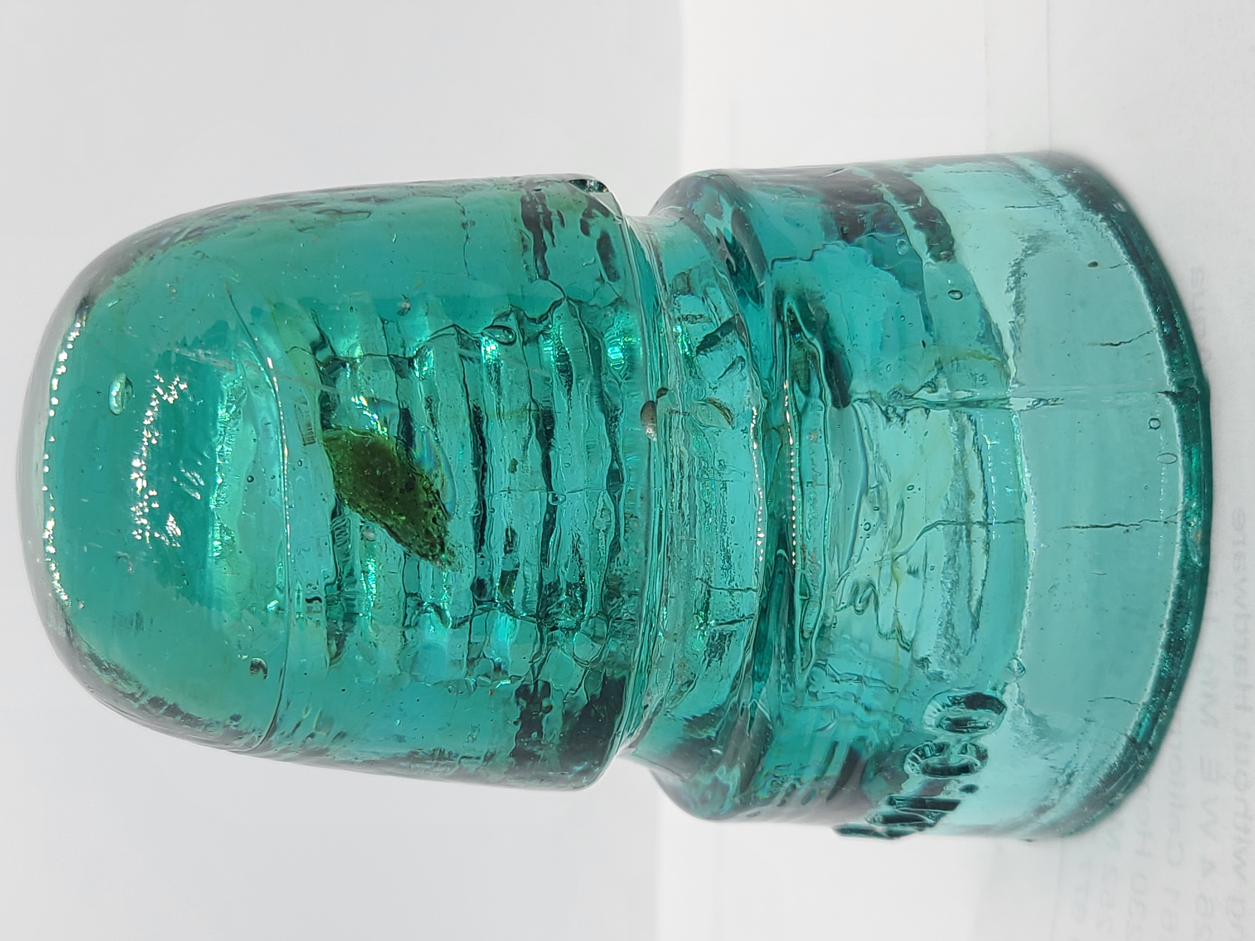 Neat beehive with an amber pollywog, there are faint amber swirls too. Two tiny flakes on the base, flake on the back wire groove and a couple other marks. On one side of the pollywog, there's a small stress crack. Asking $35 plus $9 for shipping or I can bring it to Springfield. |