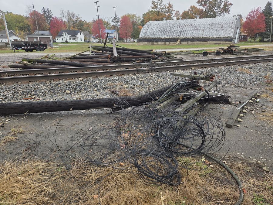 While doing some antiquing in Lake Odessa Mi. I saw this storage area for the power poles. Looks like plastic and rubber insulators were on the line.