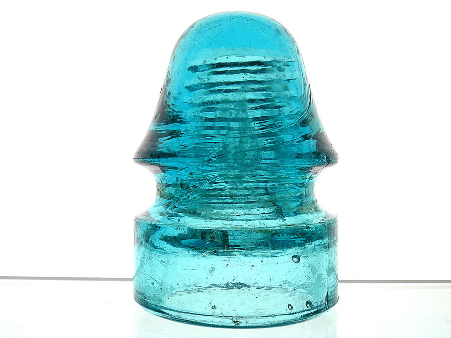 Strong blue with cotton like milk splotches. Some light surface wear, base wear and a few pecks. $ 40.00 includes shipping.