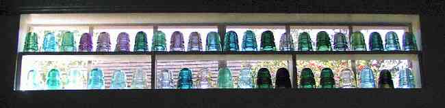 An example of every known glass manufacturer of beehives is on display in this window shot.
