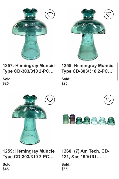 More of Tommy Bolack's insulators were sold at auction today including a few CD 303/310 Muncies. It appears they sold pretty cheap although some had damage