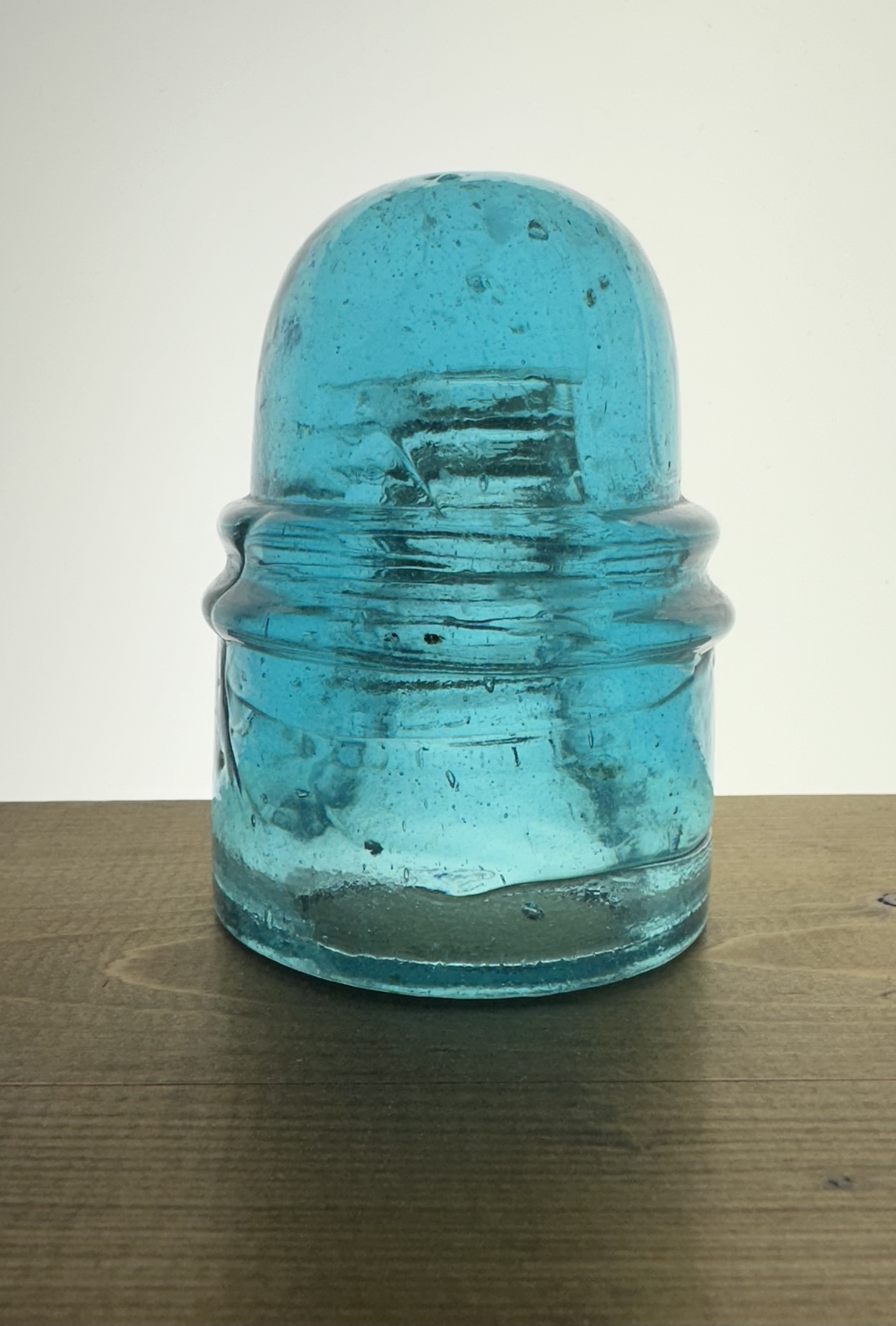 Here is a rare and crude bird in this condition. A CD 136.4 in some shade of light aqua with a nice milky glob in the dome. There is only one flake on the wire ridge that is smaller than the size of the end of a match head. There is some annealing lines in the dome and one fisheye as can be seen. The base is flawless. Skip the auction fees and take this one home for $325 shipped to your door. |