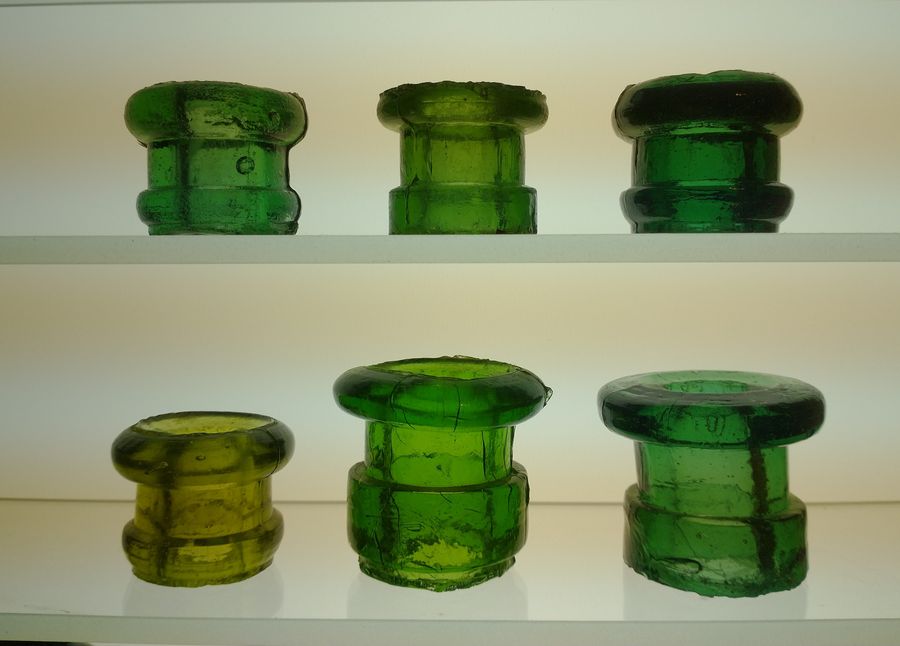 I set out six colorful green spools. The photo makes a few look just too vibrant. The lower right, and top center pieces are not that intense. The piece on top row in center is a fairly tough LRI shape to get in any color.