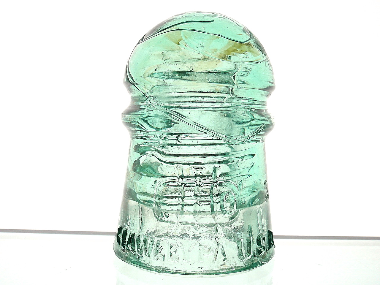 Sparkling ice green with some nice milky olive swirls in the dome and rear skirt. BOLD embossing and in factory mint condition. Two tiny spots of excess lehr kisses are the only "flaws"! $ 45.00 includes shipping.