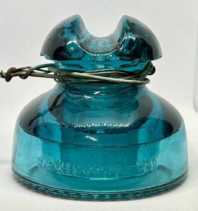 Nice Hemi blue Hemingray - 72 with piece of tie wire still attached as pictured. It does have a hard to see chip under the crown above the tie wire. The chip is visible in the picture. So let do $50 plus $8 postage. PayPal for this beauty. |