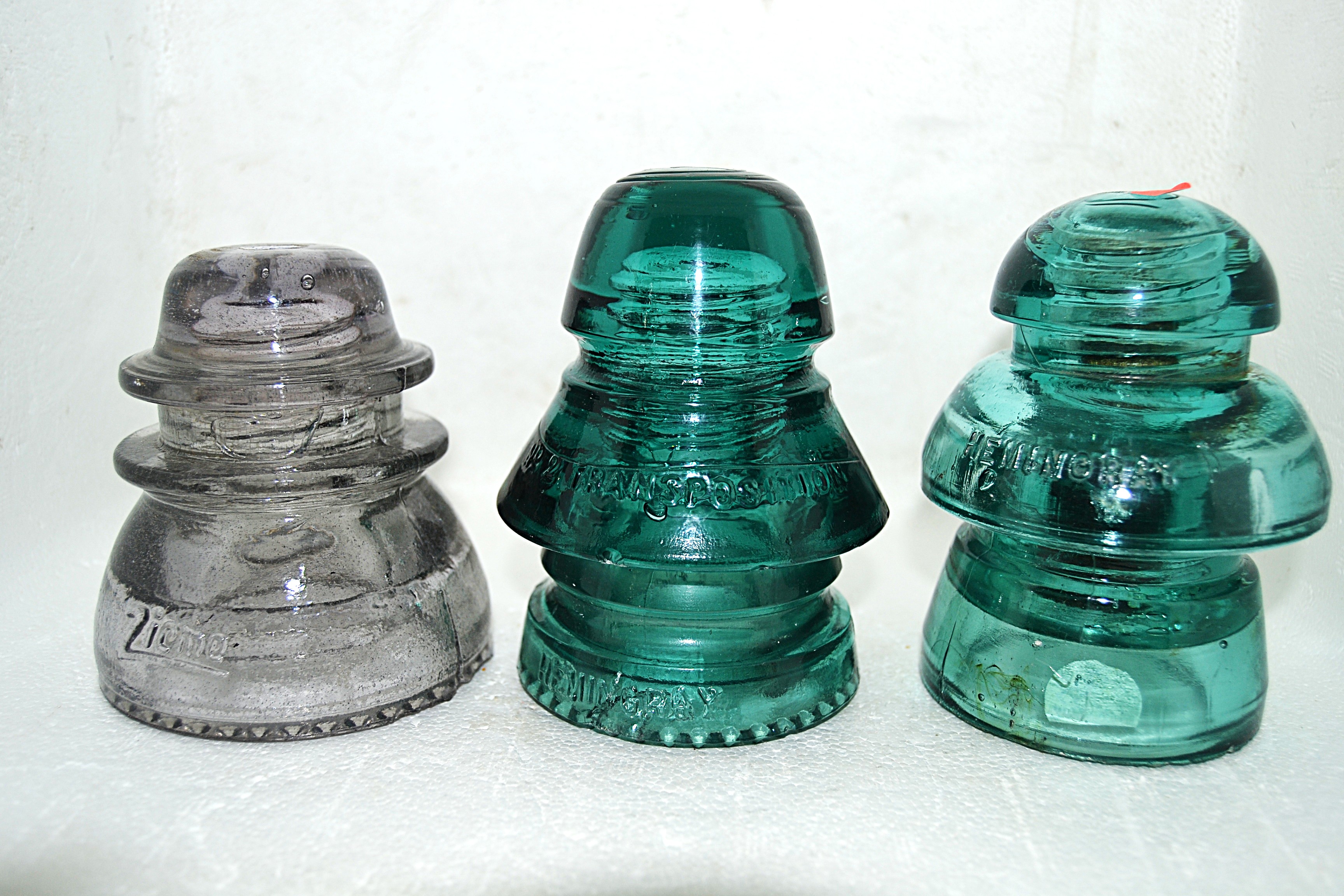 Left CD 154 embossed Zicme - Lite purple - Small sharp drips - a little area of roughness on base at overpour - $190 --- CD 201 embossed on umbrella No 2 Transposition and on skirt - Hemingray - rear skirt Patent May 2 1893 - Sharp drips - small base bruise but no drips chipped, small wire rim sliver and couple ISC chips - Dark aqua - $18 --- CD 190/191 Bottom embossed Two Piece Transposition - Top half Hemingray and on back No 50. Aqua - Several BB dings. $8 plus shipping. |