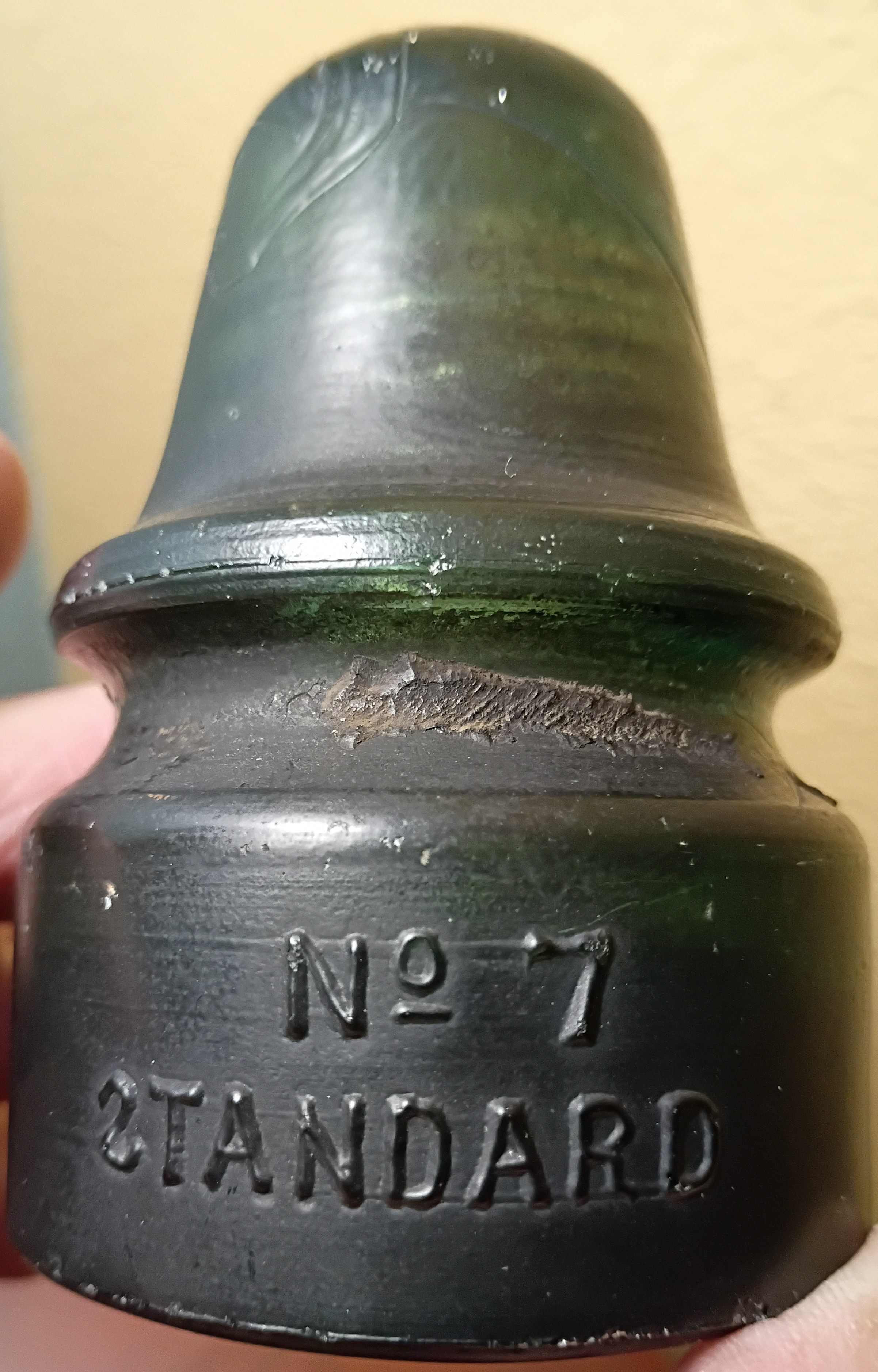Here's a great Standard No. 7. There is a backward S.....and it doesn't appear as a S at all, but looks more like the hook out of a rubber strap or something. Also there appears to be a period attached to the end of the crossbar in the # 7. Pretty strange There is a tiny day one notchlike chip at the wireridge on the mold line. and a bb ding on dome. 20 plus S&H as-found, uncleaned |