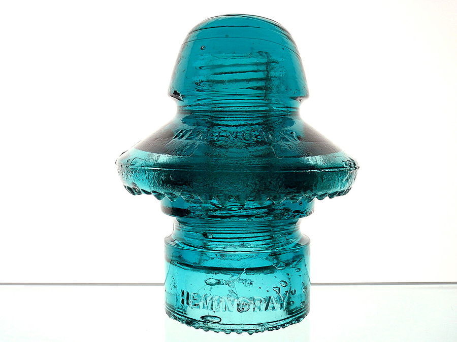This is the much more difficult double HEMINGRAY embossed No 51 transposition. About 30% of the tiny drips on the base are partially flaked and just five rear umbrella drips are flaked to varying degrees and the flake on the side upper wire ridge is the health report. Very nice for one of these fragile beasts!! $ 155.00 includes shipping. Let's try this at $ 120.00 shipped to you. |