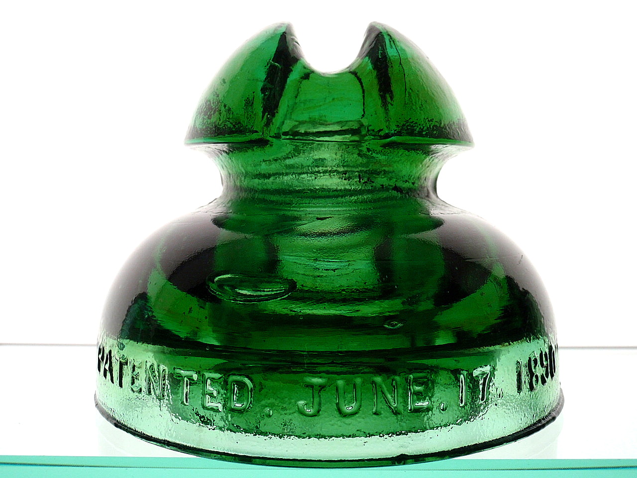 WOW!! This looks never used!! Dark yellow green with amber throughout the entire skirt area. BOLD embossing too! $ 225.00 includes shipping.