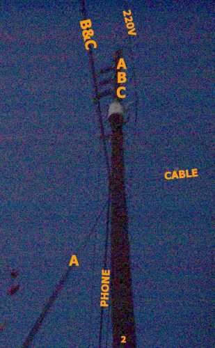 Here's another pic and it looks like phase A is on the ground but it isn't just really close the only line on the ground was the phone lines and they just had a new line running along the highway with the old line some on the pole and some on the ground. |