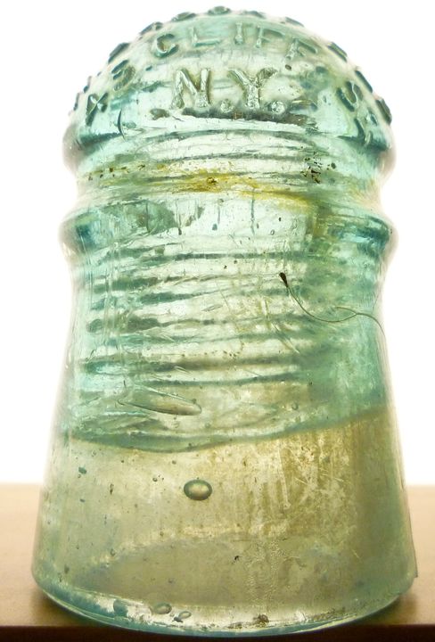 CD 102 (arc) W. BROOKFIELD / 45 CLIFF ST / NY. Rear crown:6 MLOD Smooth base. AQUA GLASS.