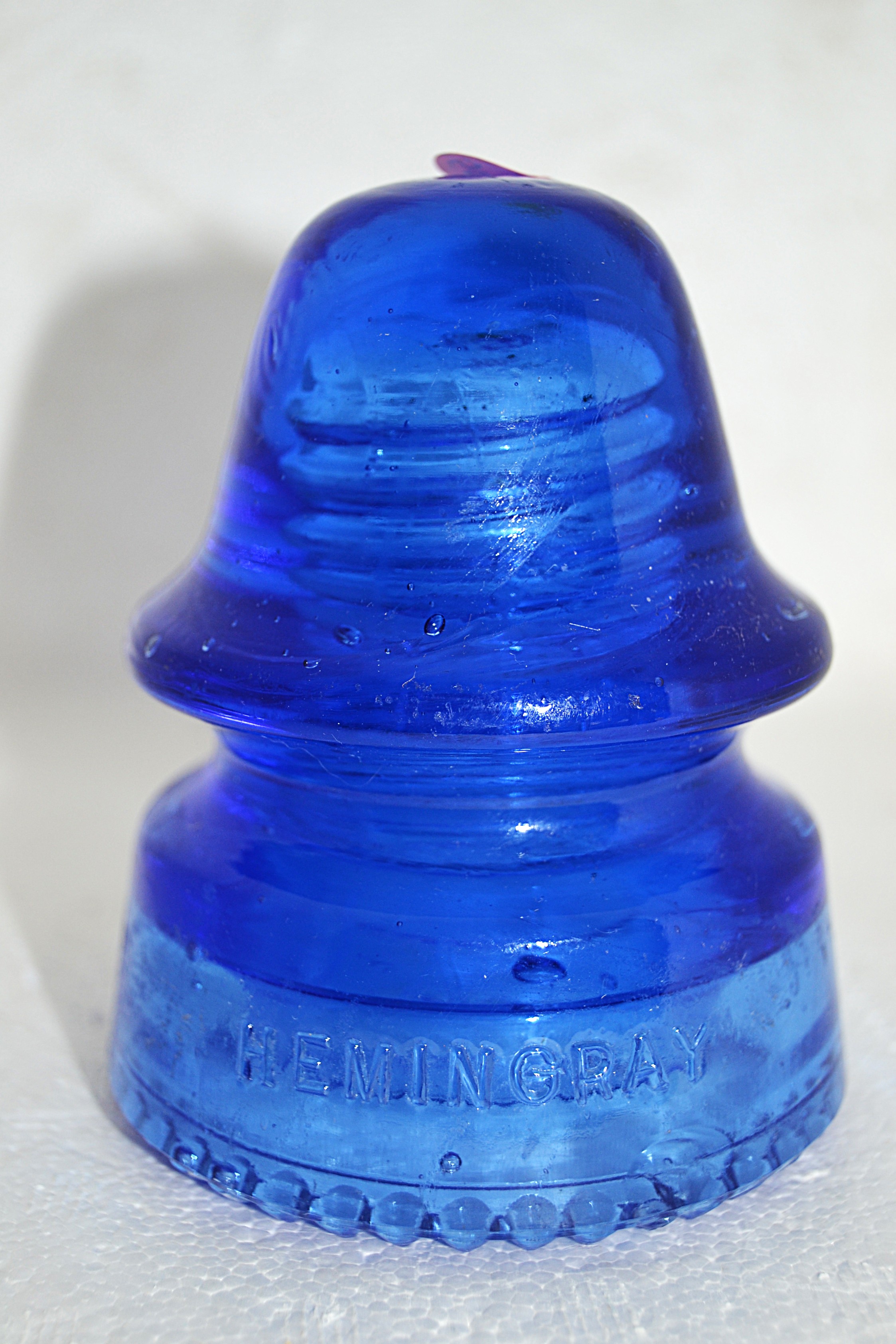 Listed is a CD 162 Hemingray and on rear No 19 - Sharp Drips - Color is a slightly milky cobalt - Insulator has a bruise which partially removes on drip and one other drip partially flaked - $425 plus actual shipping.