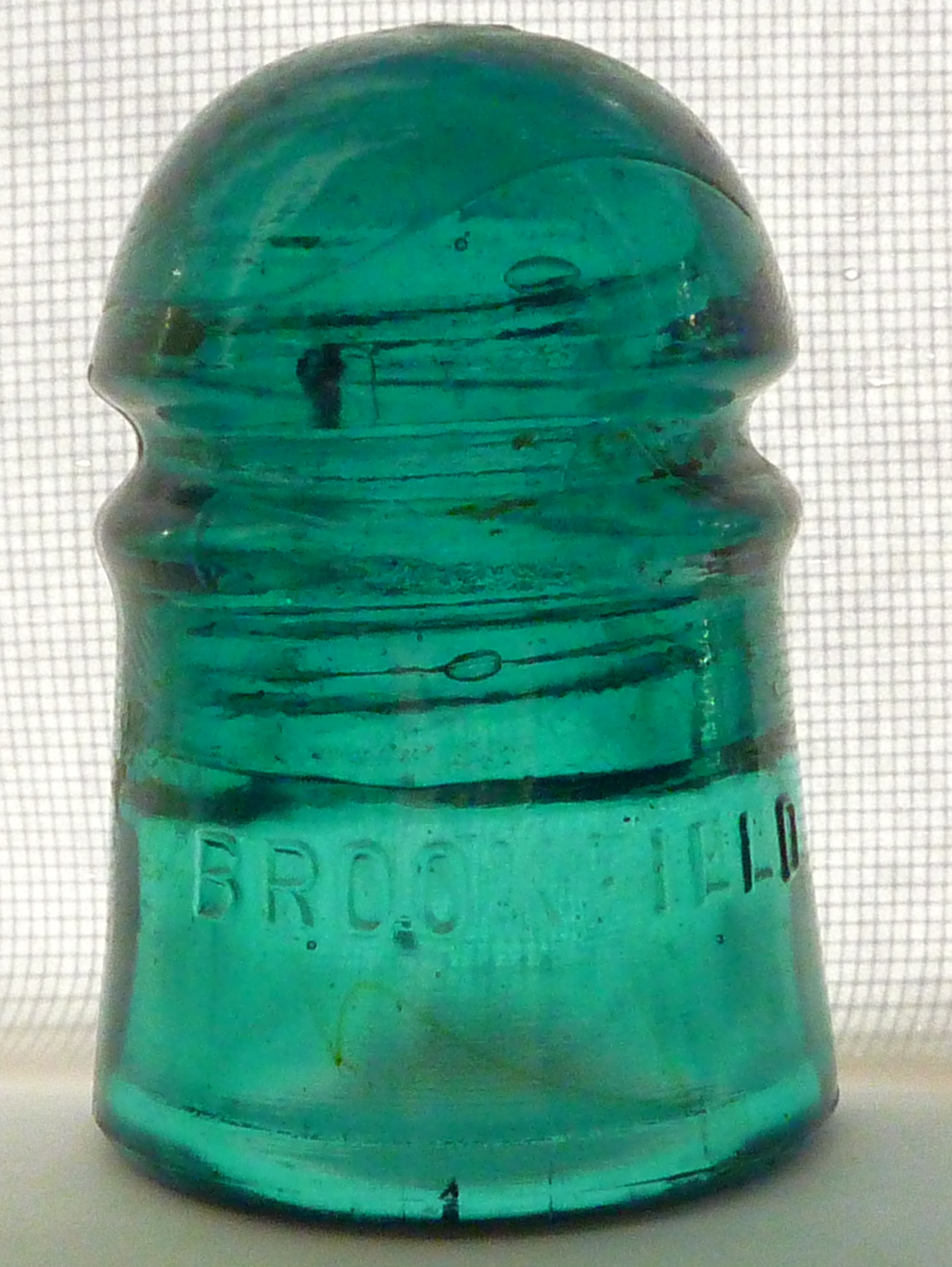 CD 102 BROOKFIELD pony insulator. Smooth base. Teal aqua. Top of dome a small backward " 17 ". Nice overall condition with no defects to note.