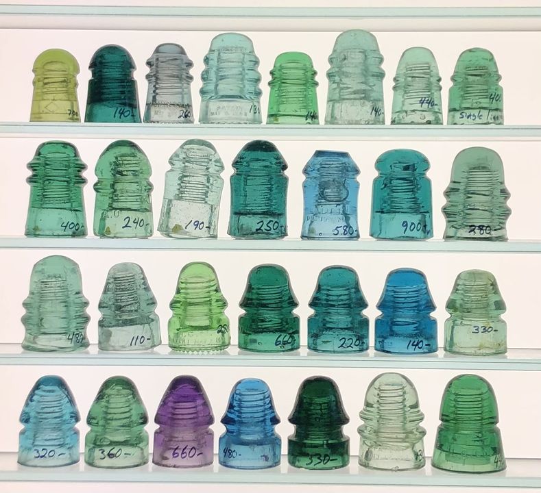 READ THE WHOLE THING BEFORE ASKING QUESTIONS. Thank you. Some prices have been reduced. Perfect timing for Christmas gifts for yourself! I'm always happy to send additional pictures and of course give a detailed description of any condition issues. Prices listed below. PLEASE SPECIFY shelf location from top to bottom and left to right in your messages and questions to me. Shipping is extra. $13 for the first piece and $1-4 per piece after that. If you see a piece that's priced below book; it has some damage! Please ask questions. Postal Money Orders and personal checks are preferred. If it's a total dealbreaker we can do PayPal. I've been collecting, buying, and selling insulators for over 26 years and have excellent references. Top Row- $700,140,260,130,140,140,440,400. Second Row- $400,240,190,250,580,900,280. Third Row -$480,110,280,660,220,140,330. Bottom Row - 320,360,660,480,330,130,440. |