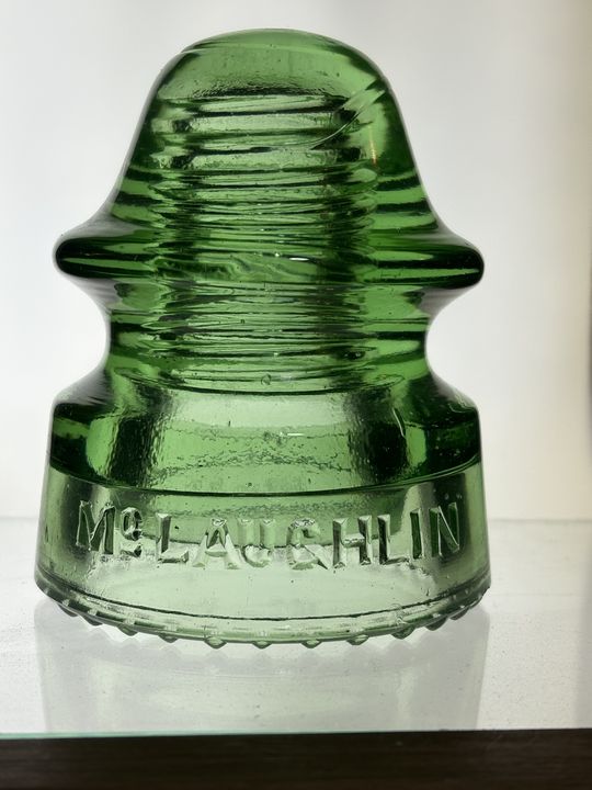 McLaughlin No–20 -- CD 164 [085] in pretty apple green color. Piece has 1/8" ping/scratch on front lower wire ridge/skirt (between "UG") and three shallow 1/8" slices on skirt near the base. Additional photos available. $45 + shipping – PayPal, Zelle or check. |