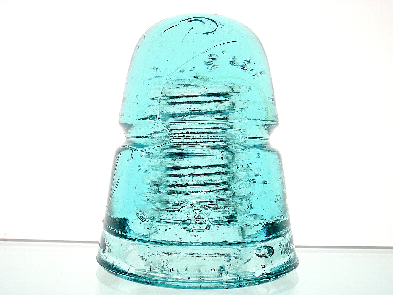 Tough to find big dome glass on Beehive style insulators. Crystal like glass quality on this bubbly CD 145 one skirt embossed "B" with a 10 or 01 on the dome top. Rear crown light bb size bruise and two rear base edge skinny 1/4" flakes are the only flaws! $ 55.00 includes shipping. Let's try $ 40.00 shipped to you. |