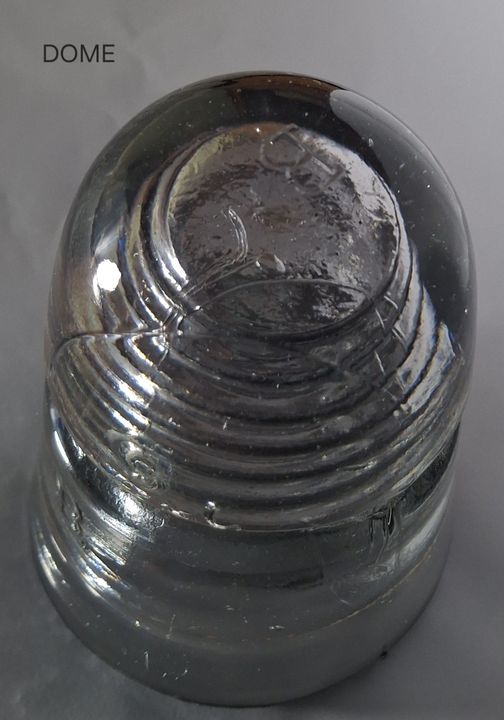 "B" on front, back and top. Light purple-gray. On the reverse, it has 2 round bruises on the dome and one small bruise on the inner skirt.