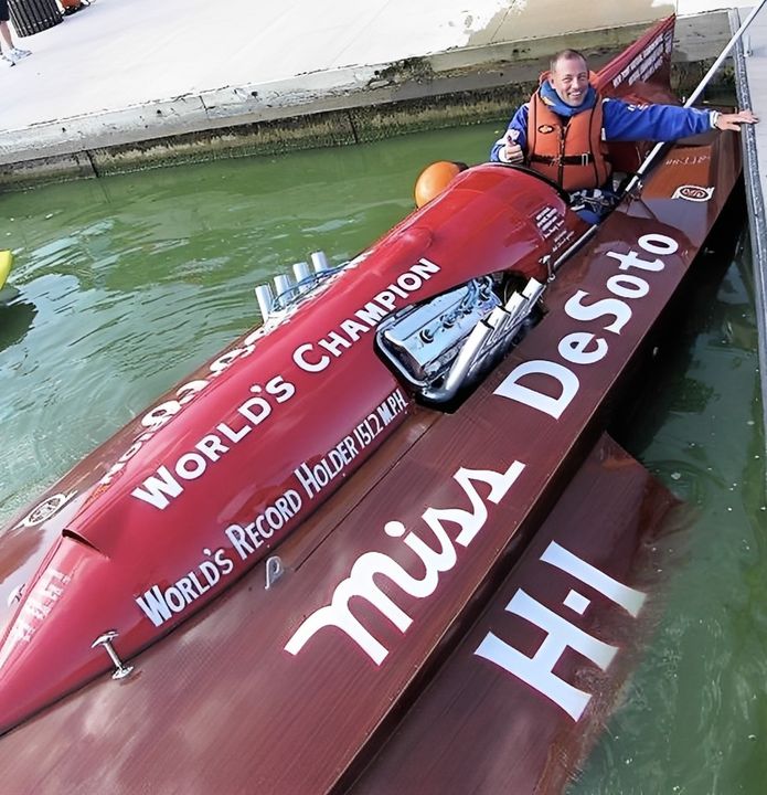 Miss DeSoto stands as a proud symbol of classic hydroplane from the 50's and 60's. Miss DeSoto was powered by a DeSoto Hemi V8, Chrysler's first-generation hemispherical combustion chamber family. These engines were renowned in racing circles for their breathing ability, high compression, and excellent torque at high RPM. With multiple carburetors, polished intake stacks, and custom headers, the DeSoto Hemi in this hydroplane delivered stunning power, perfectly suited for straight-line acceleration across open water. Now restored back to it original glory days, Miss DeSoto is a proud symbol of classic hydroplane history. Boats of this era are treasured by collectors and displayed at vintage race regattas and exhibitions in and out of the water. |