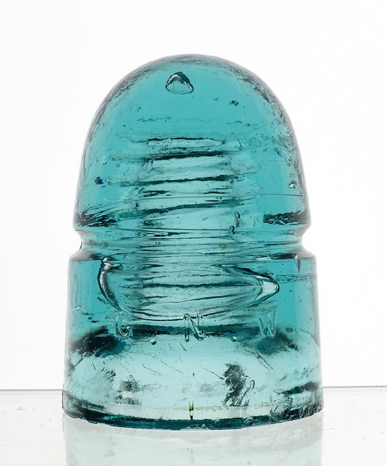 Cool old CD 143 G.N.W beehive with a very large bubble right above the embossing. The bubble measures nearly 2" across! There is some damage unfortunately; there is a 7/8" vertical fracture in the rear skirt, several skirt flakes off the base edge, with the largest measuring about 5/8", some nibbling along the base edge, and a burst bubble on the base in back. Asking $65 plus shipping. |
