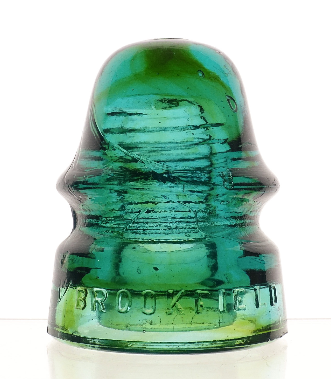 Really nice CD 162 Brookfield New York with some very attractive amber swirls throughout. This particular profile is thicker than most and almost resembles an 162.3. Excellent condition with just one bb ding below the wire groove to the left of the embossing and a couple tiny dings. Asking $30 plus shipping. |