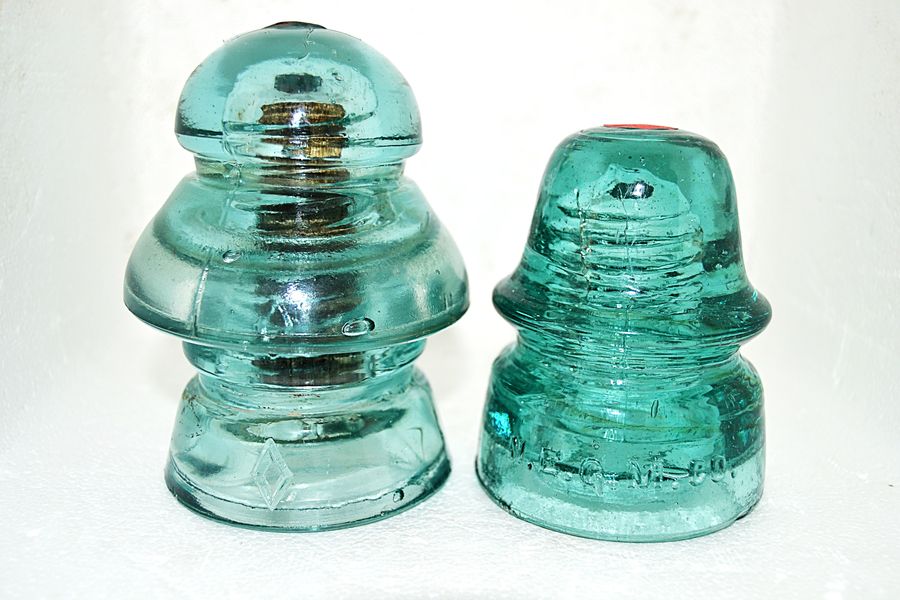 Left is a CD 190/191 with a double diamond on front and back on bottom section - Top section no embossing - Lite Blue - One micro ding on dome - $43 --- Right is a CD 162 embossed N.E.G.M. CO. - Aqua - See no damage but will call it VNM - $15 plus Postage - Three views. |