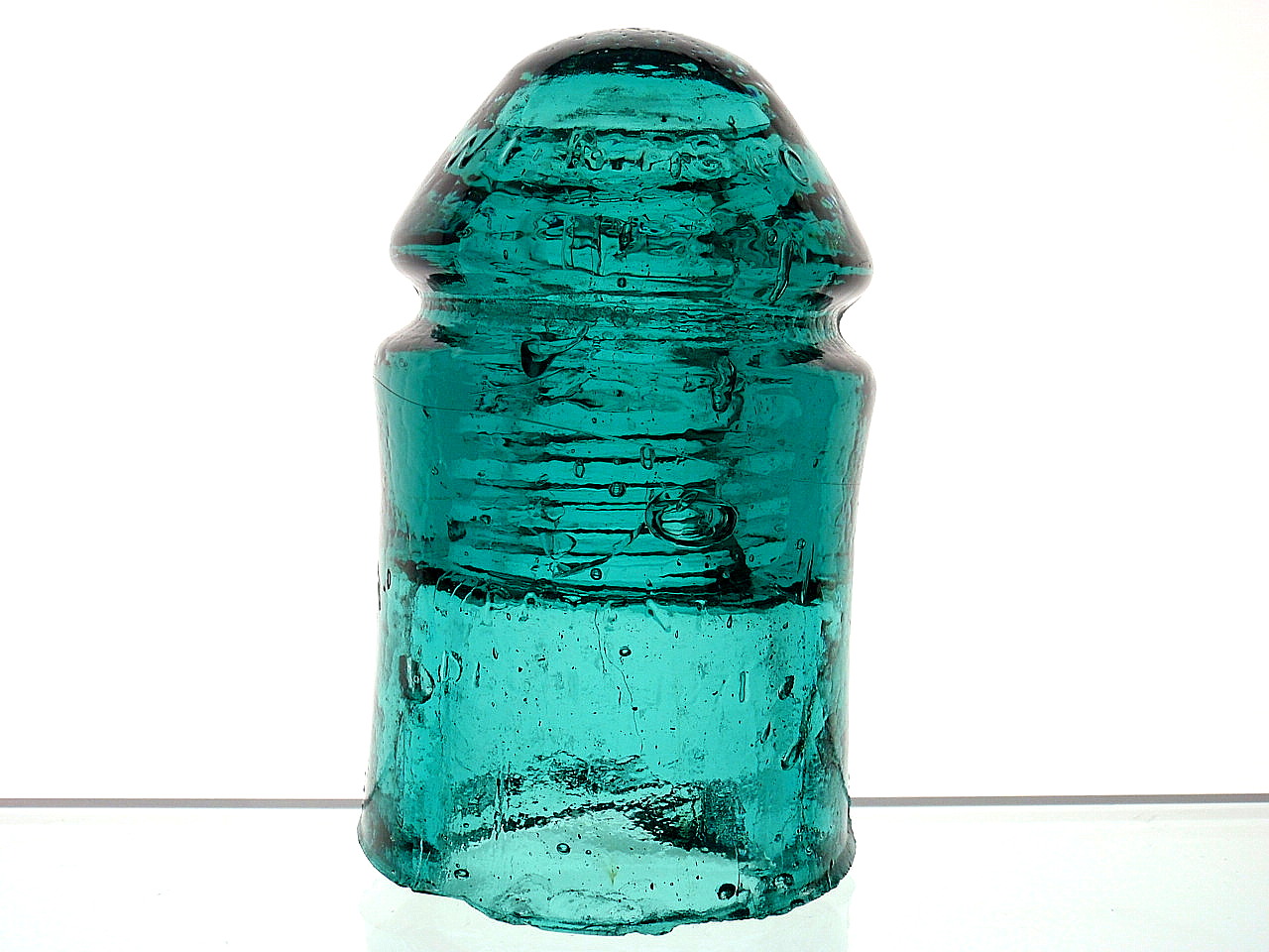 Some nice seed bubbles in this dark teal aqua CD 126.4 W.E.MFG.CO. / PATENT DEC 19 1871 R- W.U. Side lower wire ridge light 1/8" bruise, three paperthin matchead base edge flakes, and two skinny 1/2" base edge flakes are the only faults. $ 195.00 includes shipping. Let's try $ 155.00 shipped to you. |