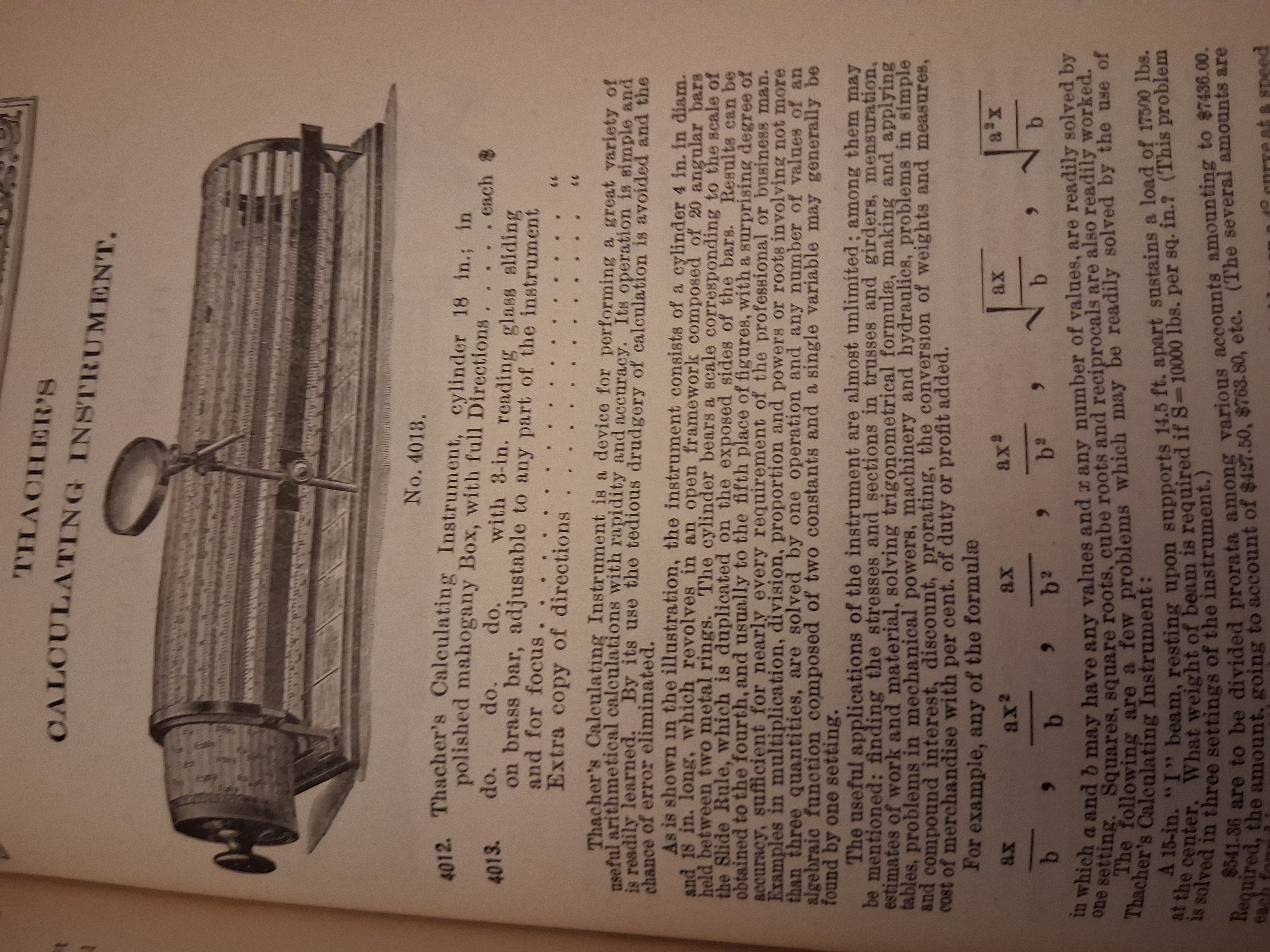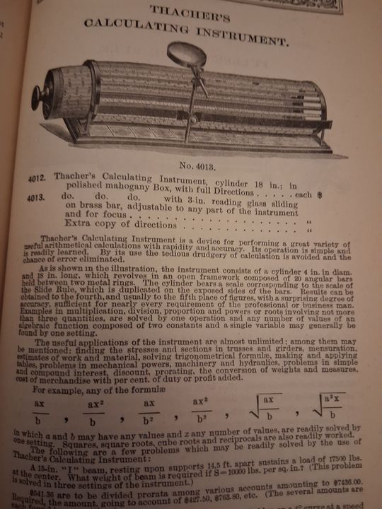 In regards to Andrew Gibson's post on the sale of his model 4012 pair of calculating instruments, I found this reference to a similar unit in my 1921 Keuffel & Esser catalog of Drawing Materials, Surveying Instruments and Measuring Tapes. These vintage drafting and land surveying catalogs are wonderful! |